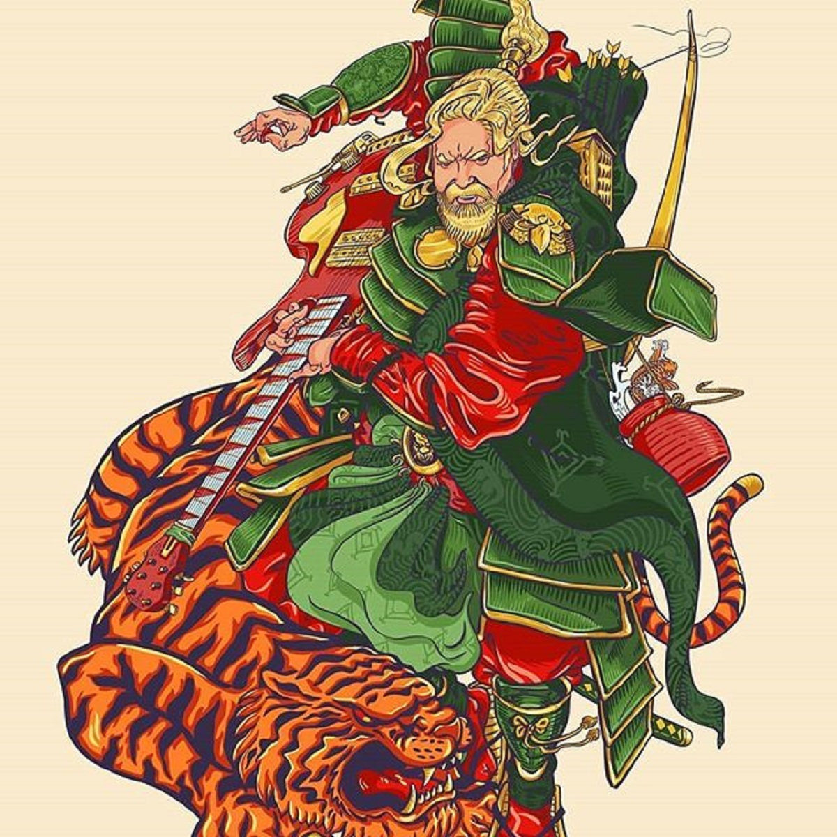 Samurai artwork by Orko, in celebration of the 5 of 7's visit to Japan in November 2019. Approx 18 x 34 inches.